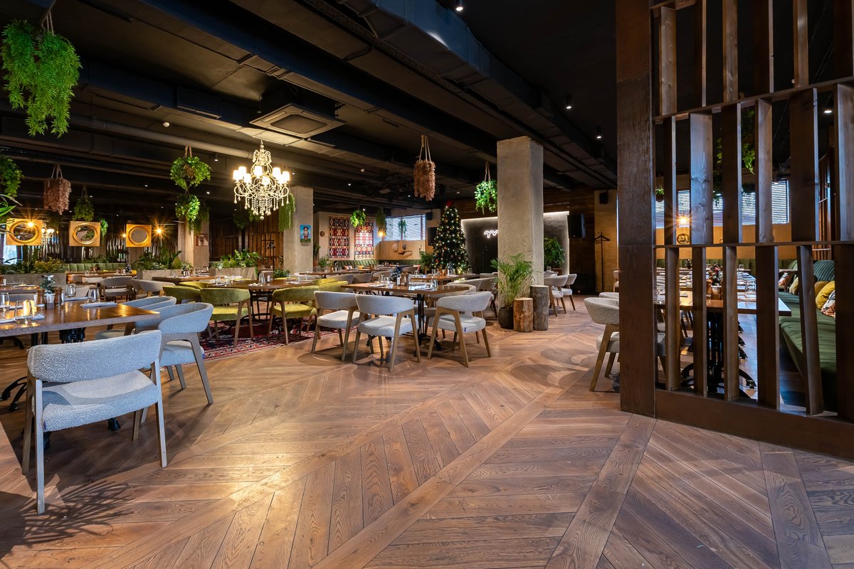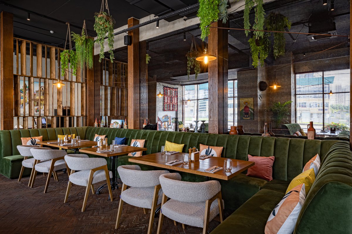У нас работает Wi-Fi, работает доставка блюд в офис или на дом, доступны детская комната и банкетный зал - всё к вашим услугам.